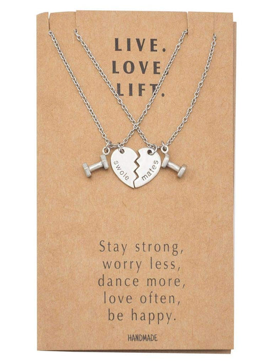 Carlee Dumb Bell Pendant Necklace with Heart Matching Pendant