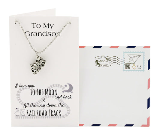 Cal Train Necklace Love You to the Moon and Back Grandson Gifts, Happy Birthday Cards