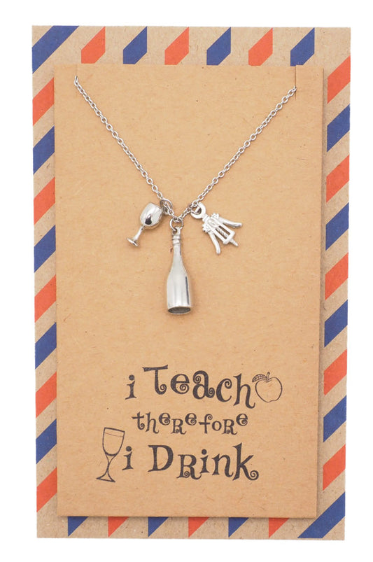 Cali Drinking Utensils Teacher Necklace, Inspirational Quote on Greeting Card