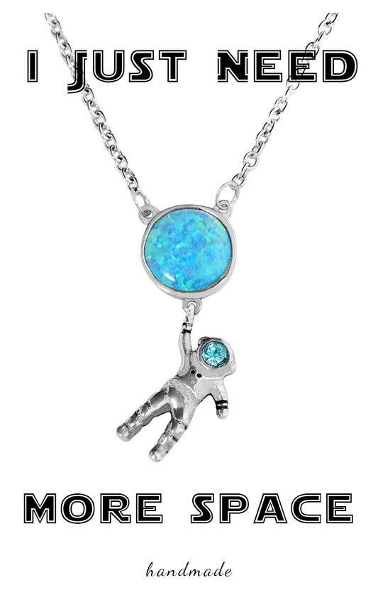Catherine of Alexandria Opal Planet with Astronaut Pendant Necklace with Handmade Inspirational Greeting Card