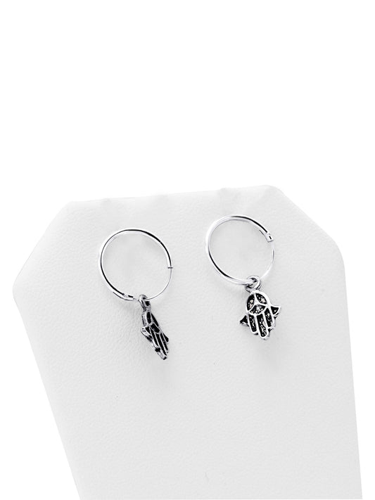 Casey Hamsa Hand, Hand of Fatima Hoop Earrings, 925 Sterling Silver