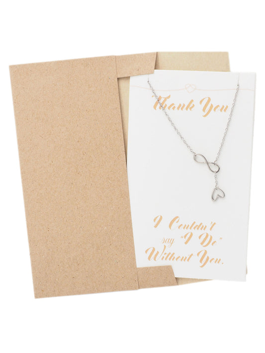 Camryn Infinity and Heart Lariat Necklace for Bridesmaid, Wedding Jewelry, with Thank you Quote
