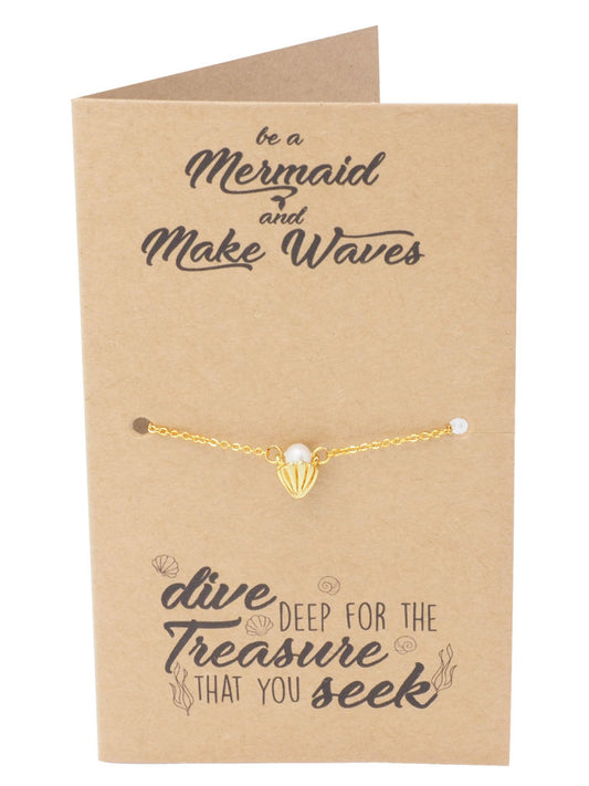 Cassy Mermaid Mini Shell Pearl Bracelet for Women, Gold-Tone comes with Inspirational Quote