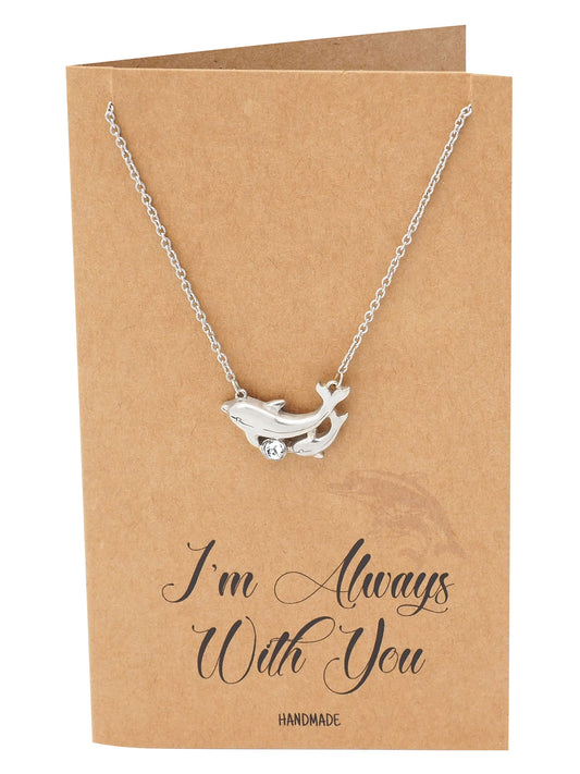 Dazzle Mother Daughter Necklace Dolphin Pendant I'm Always With You Jewelry Greeting Card