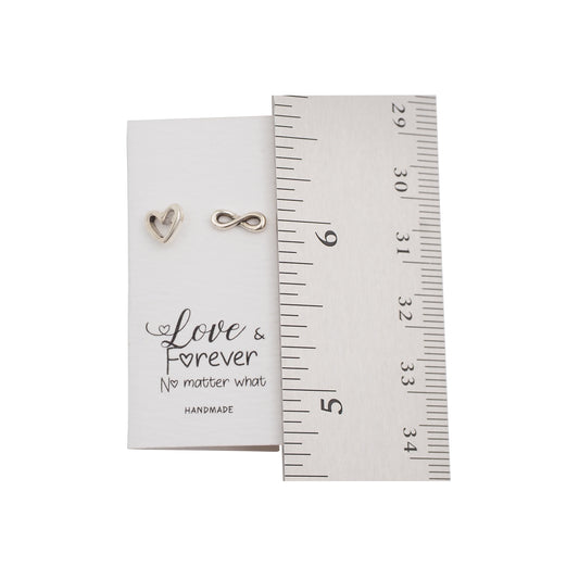 Dulce Heart and Infinity Earrings, Gifts for Women, Inspirational Quote Greeting Card, Silver Rhodium Plated