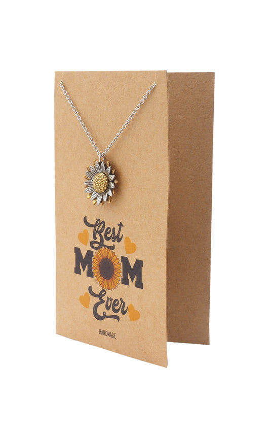Eleanor Sunflower Necklace for Mom, Gifts for Mother's Day, Mothers Necklace with Inspirational Greeting Card - Two Tone