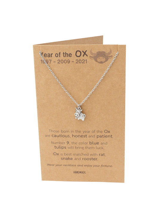 Fallon Year of the Ox Animal Jewelry Gifts for Family with Chinese Zodiac Sign Quotes on Greeting Card