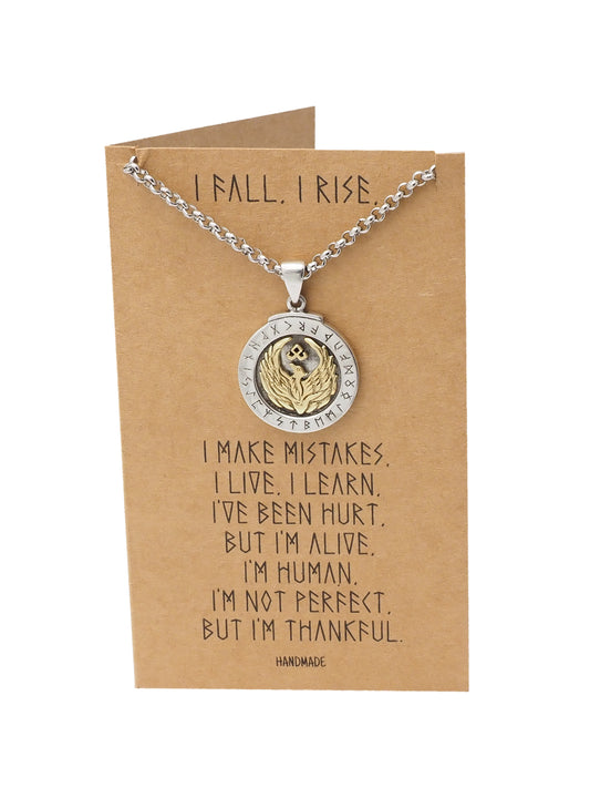 Fanny Phoenix on Plate Pendant Women Necklace, Bird Charm with Motivational Quote Card