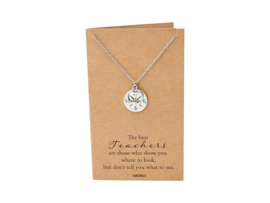 Everleigh Compass and Apple Pendant Necklace, Appreciation Gifts for Teachers with Greeting Card