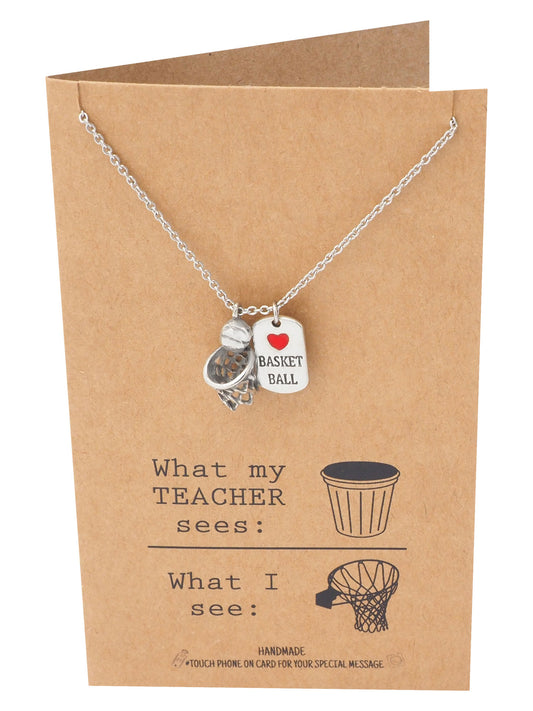 Fritz Basketball and Net Pendant Necklace with Plate, Male Necklace, Gifts for Friends and Teachers