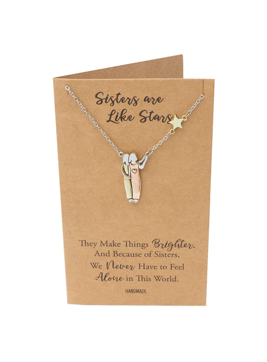 Gracyn Sisters and Star Pendant Necklace, Gifts for Best Friends with Greeting Card