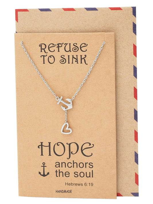 Hope Heart Lariat Anchor Necklace, Christian Jewelry, Sympathy Gifts