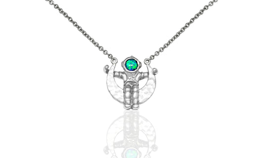 Hypatia of Alexandria Astronaut on Moon Pendant Necklace with Handmade Inspirational Greeting Card