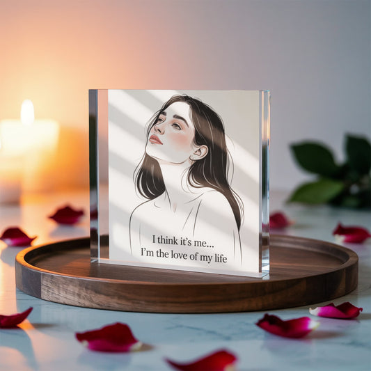 I Think It’s Me – I’m the Love of My Life” Acrylic Block – Self Love Décor and Empowerment Gift for Women