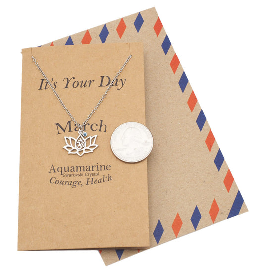 Jennifer Birthday Cards Yoga Lotus Flower March Birthstone Necklace with OM Symbol