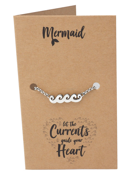 Jenica Mermaid Wave Bracelet for Women, Silver Tone, Inspirational Jewelry and Greeting Card