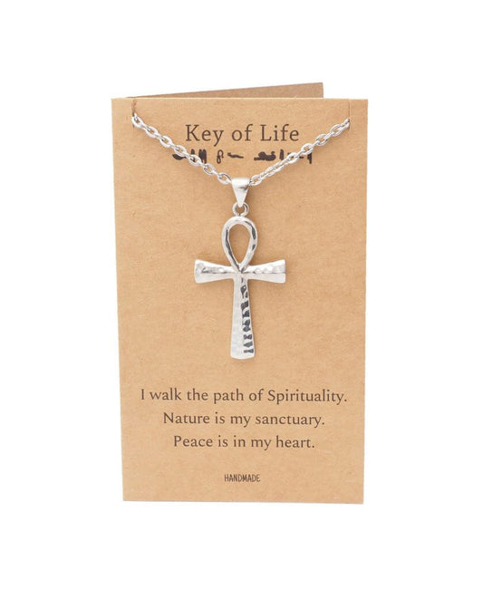 Laniya Ankh Cross Pendant Necklace, Gifts for Men and Women with Inspirational Quote on Greeting Card