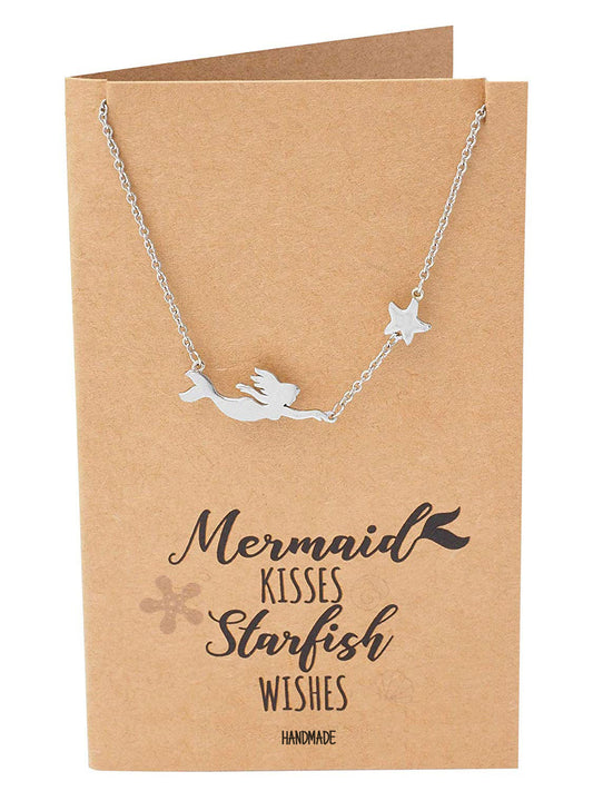 Lana Mermaid And Starfish Necklace For Women, Silver Tone, Comes With Inspirational Quote