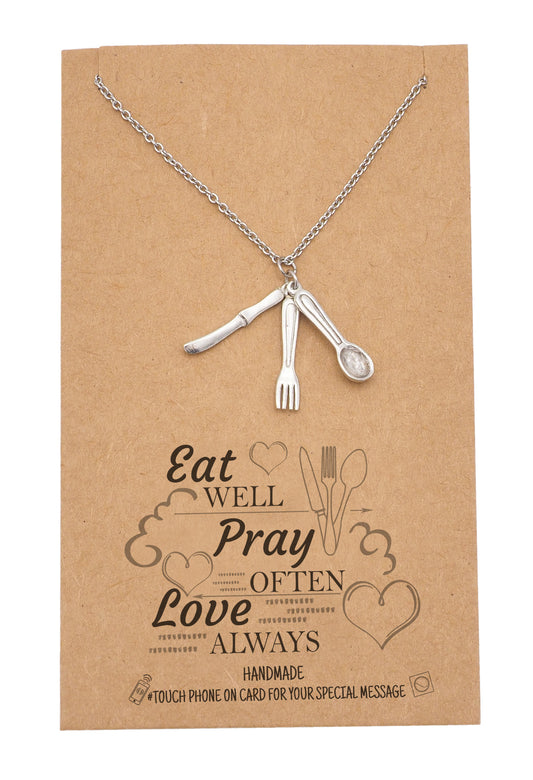 Laney Gifts for Mom Chefs Fork Spoon Jewelry Charm Necklace