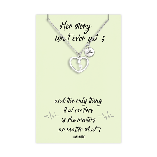 Leim Continue Semicolon Heart Necklace, Mental Health Awareness, Encouragement Gifts for Women