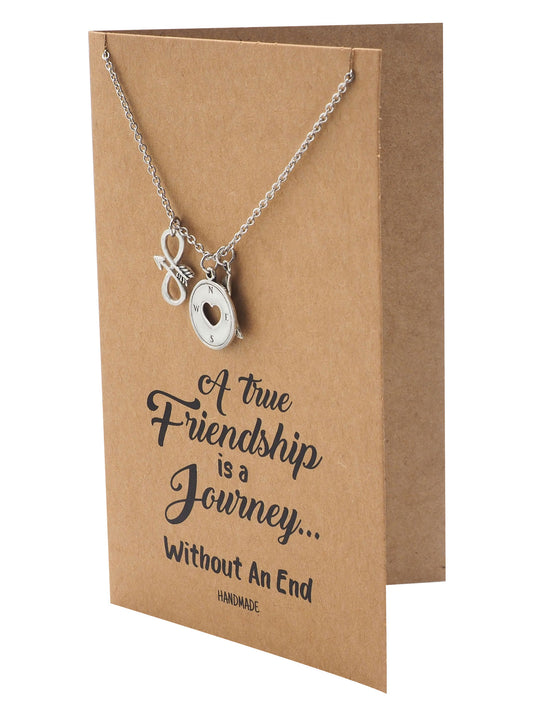 Lena Friendship Necklace With Infinity Arrow, Compass And Wings Pendant, Inspirational Greeting Card