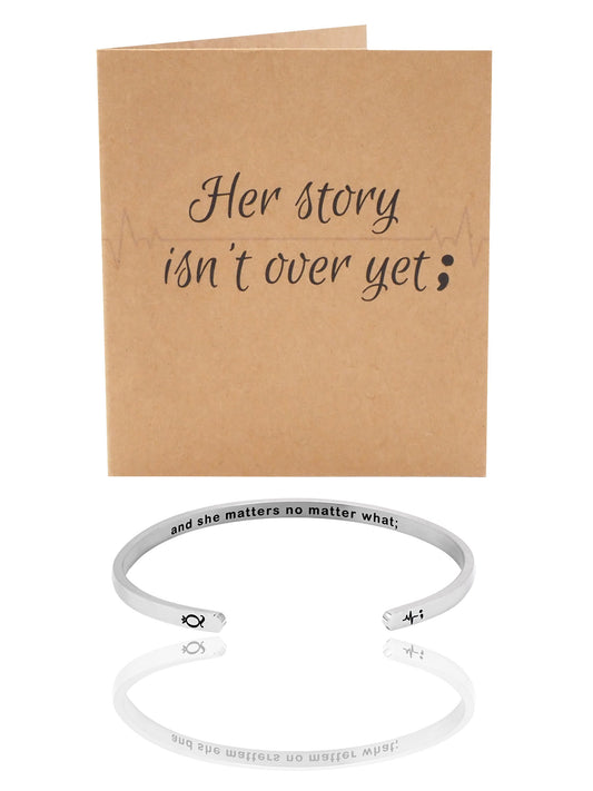 Liezel Continue Semicolon Heart Cuff Bracelet, Mental Health Awareness, Encouragement Gift for Women