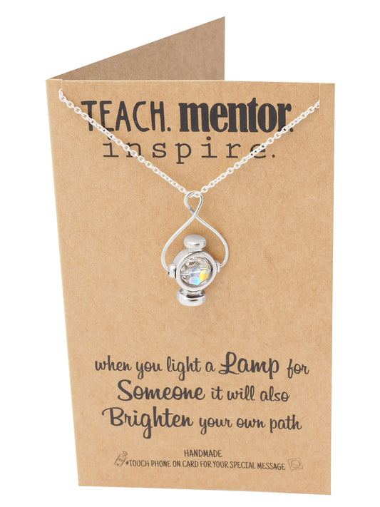 Leannie Lamp Pendant Necklace, Teach Mentor Inspire, Gifts For Women With Inspirational Quotes