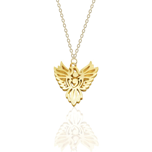Mori Rising from the Ashes: Phoenix Semicolon Pendant Necklace, Symbol of Renewal and Resilience - Gold Tone