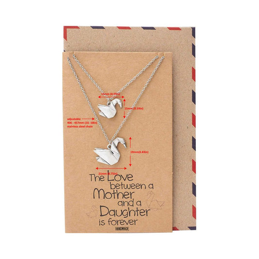 Mother and Daughter Swans Origami Swan Matching Necklaces, Gifts For Mom and Daughter, Set of 2 with Greeting Card