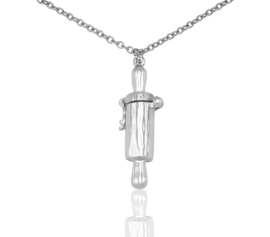 Milana Rolling Pin Cremation Pendant Necklace, 100% Handmade - Silver Tone