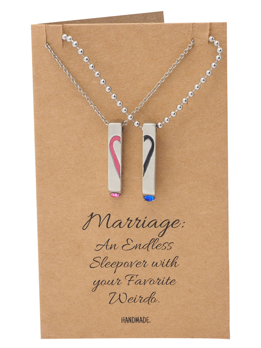 Mildred Couple Bar Pendants with Swarovski Crystals, Set of 2 with His Crazy and Her Weirdo Inscription with Greeting Card
