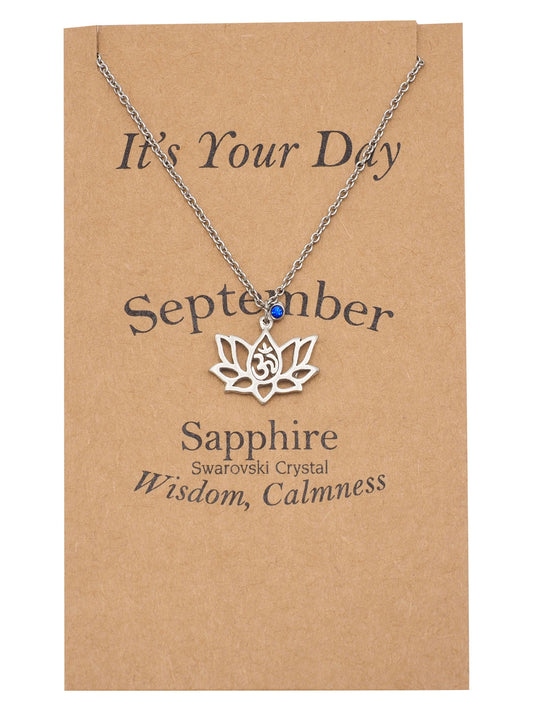 Nancy Lotus Flower Necklace with September Birthstone and OM Symbol Pendant