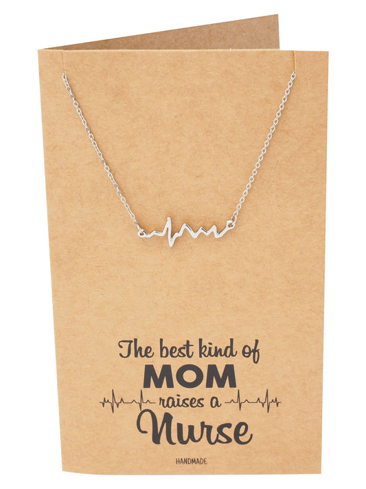 Naiobe Electrocardiogram Heartbeat Necklace, Nurse Gifts, Gifts for Women with Greeting Card