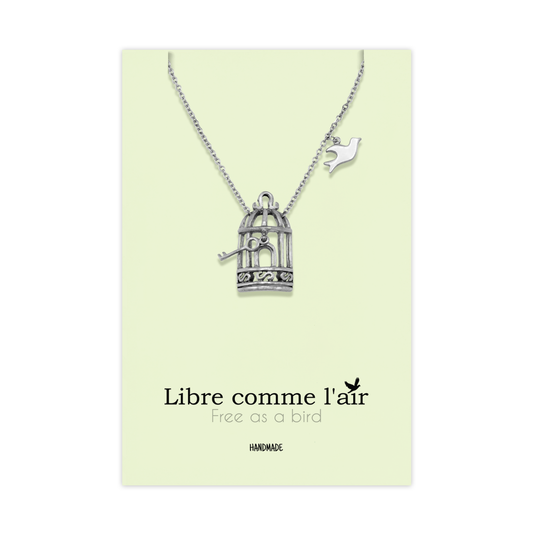 Aya Bird Cage with Key and Bird Charms Necklace, Womens Necklace, Gift for Women