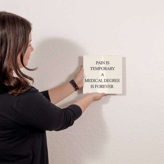 Pain Is Temporary, A Medical Degree Is Forever — Inspirational Metal Gloss Wall Art for Doctors, Nurses & Medical Students
