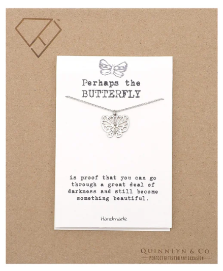 Quinnlyn & Co. Erle Butterfly Pendant Necklace, Handmade Gifts for Women with Inspirational Quote on Greeting Card