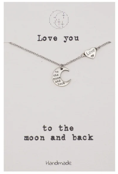 Quinnlyn & Co. Harold Engraved Heart Moon Pendant Necklace, Handmade Gifts for Women with Inspirational Quote on Greeting Card