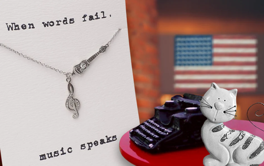 Quinnlyn & Co. Guitar and Treble Note Pendant Necklace, Handmade Gifts for Women with Inspirational Quote on Greeting Card