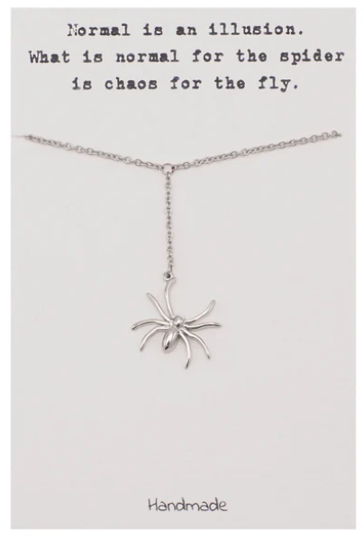 Quinnlyn & Co. Hanging Spiderman Pendant Necklace, Gifts for Women with Inspirational Quote on Greeting Card