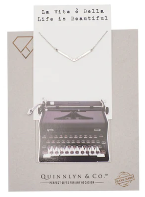 Quinnlyn & Co. La Vita e Bella Engraved Chevron Pendant Necklace, Handmade Gifts for Women with Inspirational Quote on Greeting Card