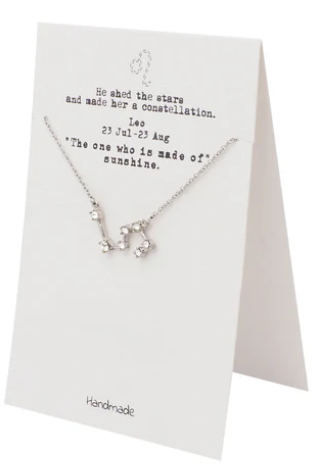 Quinnlyn & Co. Leo Agatha Zodiac Pattern Swarovzki Pendant Necklace, Birthday Gifts for Women, Teens and Girls with Inspirational Greeting Card