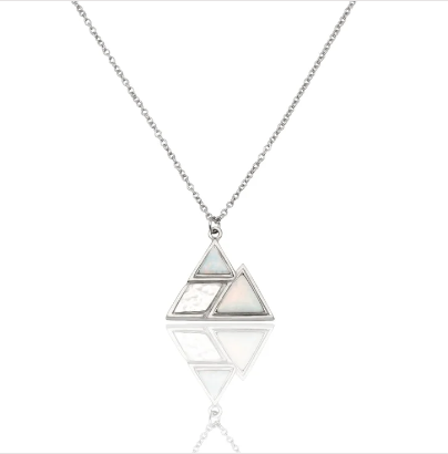 Quinnlyn & Co. Jackie Tribe Triangle Necklaces with Lab-Created Opal Pendants, Handmade Gifts for Women with Inspirational Quote on Greeting Card, Set of 3