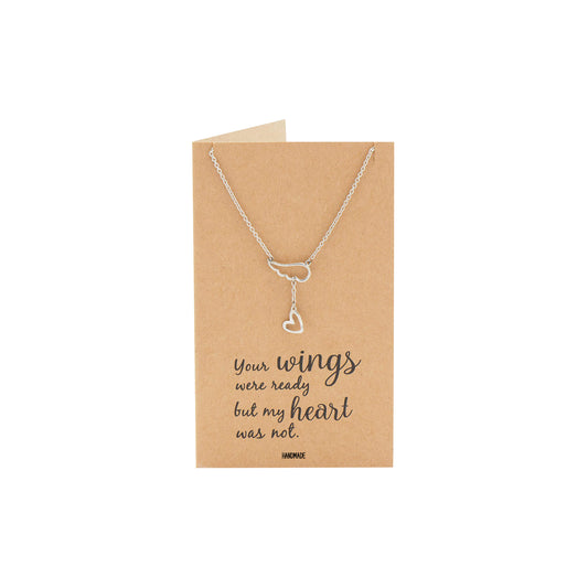 Tasha Heart Lariat Angel Wing Necklace, Sympathy Gifts