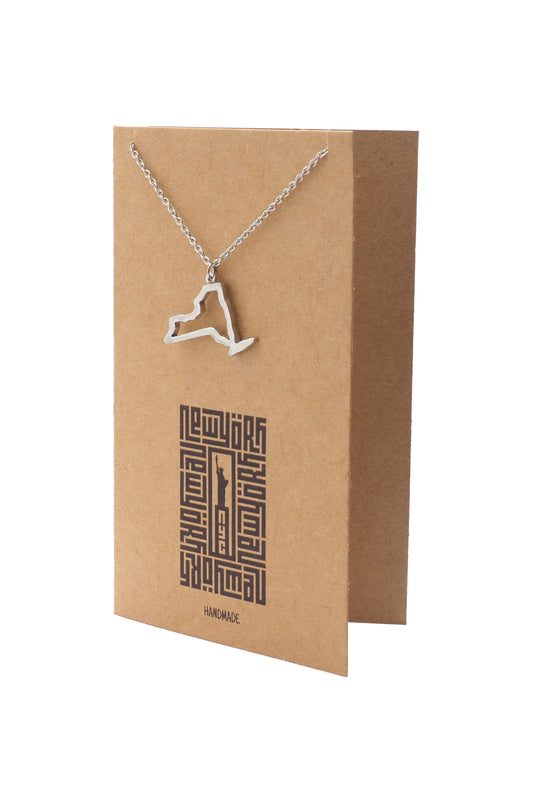 Juliette New York Map Necklace for Women with Greeting Card - Silver Tone