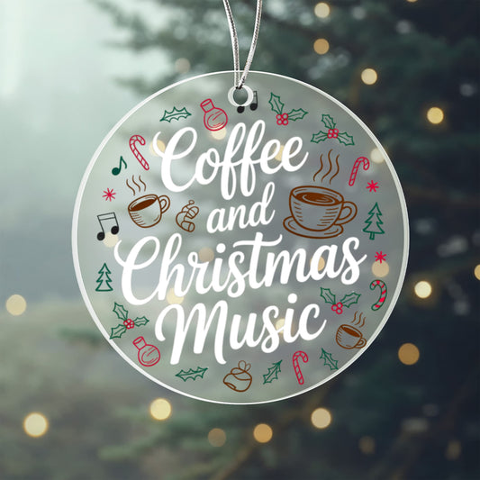 Coffee and Christmas Music Acrylic Ornament – Festive Holiday Decoration for Coffee Lovers