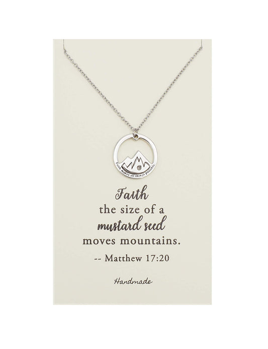 Joyfulle Faith Mountain Pendant Necklace, Religious Jewelry, Gifts for Women with Inspirational Greeting Card