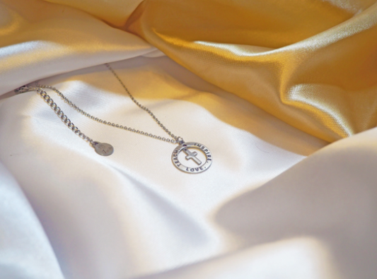 Joyfulle Esther Cross on Plate Necklace, Wear the Love Cross Charm, Unique Christian Gift with Inspirational Greeting Card