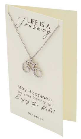 Joyfulle Sadella Bicycle Pendant Necklace, Handmade Gifts with Inspirational Quotes on Greeting Card
