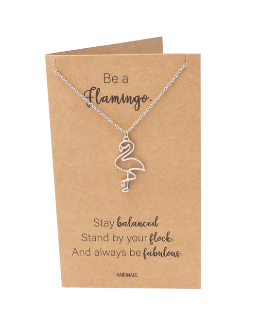Belva Flamingo Pendant Necklace, Gifts for Women with Inspirational Quote on Greeting Card