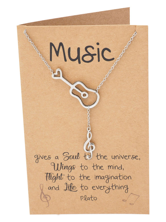 Cattleya Guitar Music Note Necklace with Treble Pendant, Gifts for Music Lovers